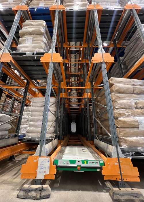 The system provides automated placement of pallets in the storage tunnel, reducing loading and unloading cycle times, improve space and operational efficiency and safety within your dense storage facilities.